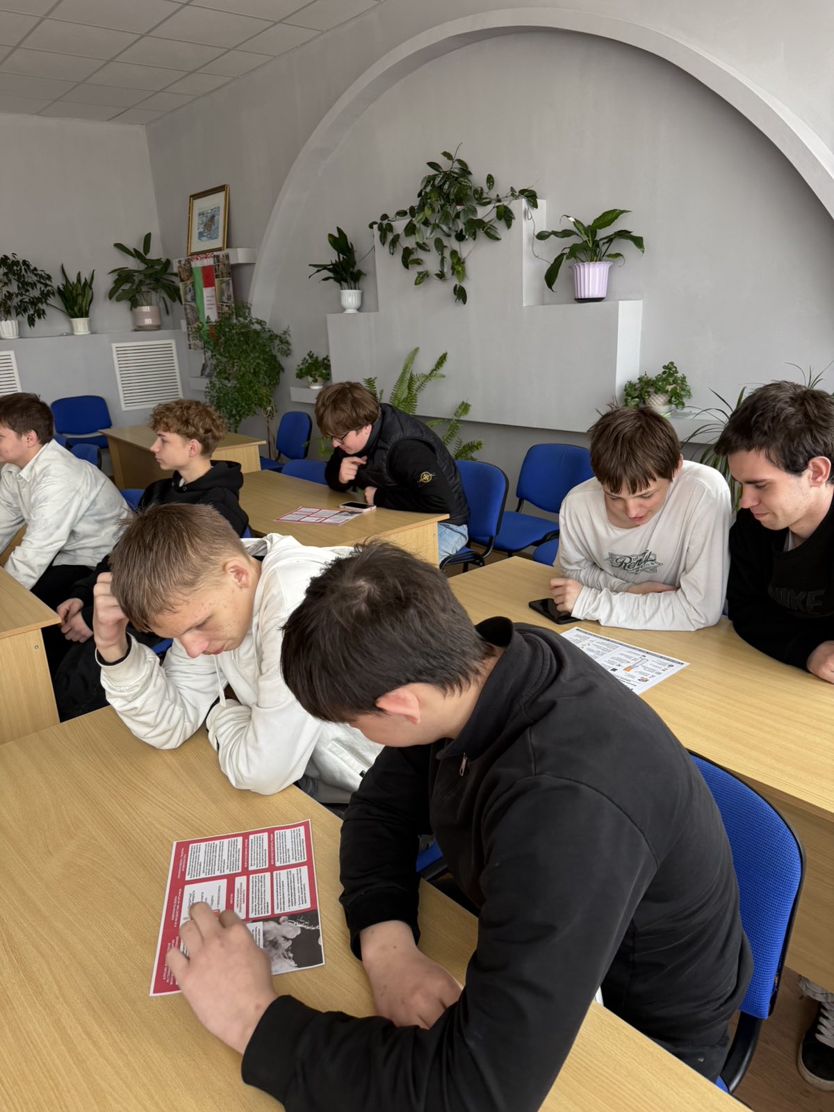 Владислав Денисович Шарафанович представил презентацию по теме встречи, а секретарём ПО БРСМ колледжа были подготовлены и вручены информационные листовки участникам.