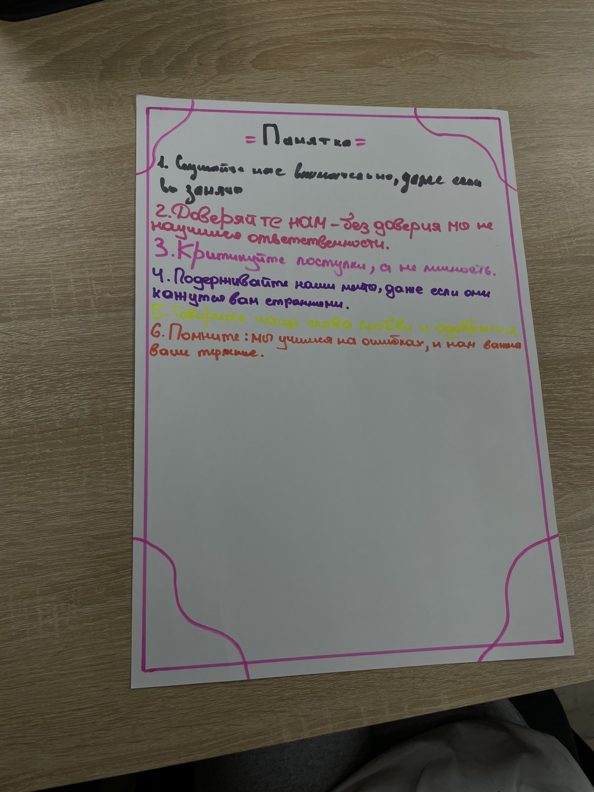 - помнить, что доверие и внимание важнее строгих правил;