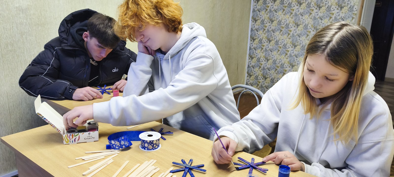 - ребята мастерили новогодние украшения;
