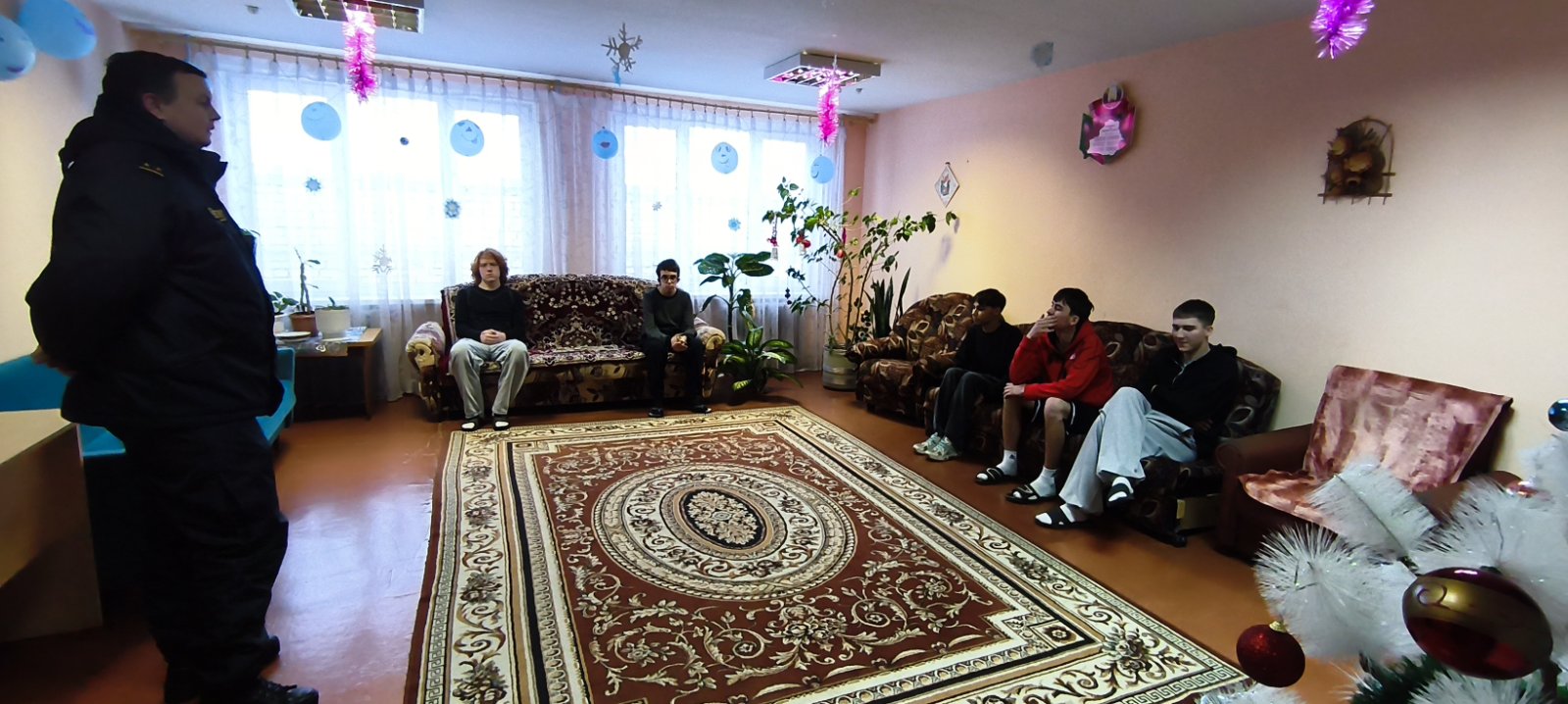 08.01.2026В общежитии колледжа для ребят, оставшихся на зимние каникулы, состоялась встреча с инспектором ИДН. Темой беседы стало «Закон и подросток».