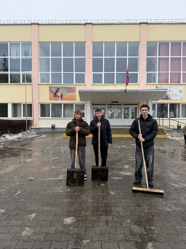 11.02.2026В Берестовицком государственном колледже состоялась трудовая акция «Уберем снег вместе». Волонтерами ОО “БРСМ” очищена территория от снега и наледи.