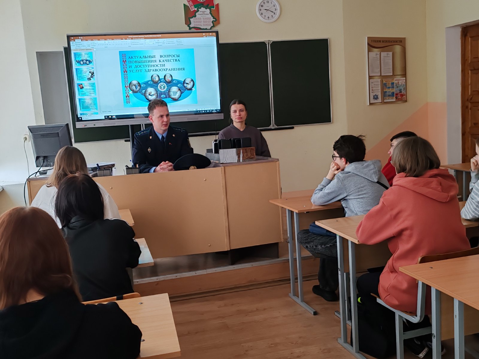 Учащиеся вместе с приглашённым экспертом обсудили ключевые темы: право на жизнь и медицинскую помощь, личную ответственность за своё здоровье, важность соблюдения законов и последствия собственных поступков.